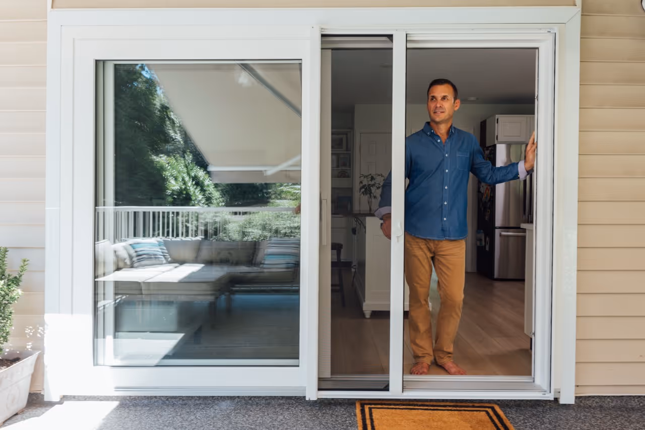 Our in-house manufactured solution, the Fentro sliding screen is a high quality screen made with European screenbar, offering economical and effective bug protection that is perfectly integrated and aesthetically pleasing. It can cover openings up to 2000 mm (78”) wide and 2200 mm (86”) high. Standard colours are white and black, with custom RAL colours available upon request.
